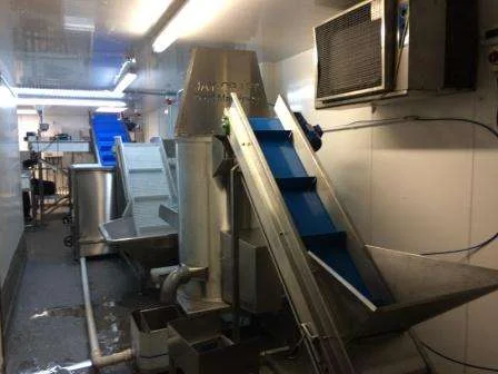JC 56lb Peeler, Surge Tank elevator, Flat Bed Inspection Table and a Bagger Weigher