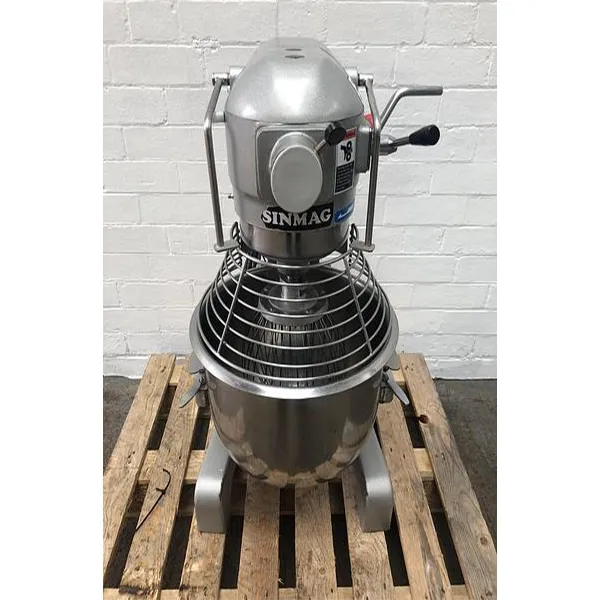 Sinmag Sm200 20lt Bench Top Planetary Mixer.Supplied with stainless bowl and 2 tools. Single phase. Good used condition.