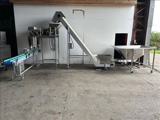 Posiweigh Triple200 Three lane linear weighing line, Serial: 3054, 2015, never been in production, weighing capacity up to 1000grams, suitable for dry, free flowing granular or piece type products, hopper capacity 120l, weighpan capacity 5l, two different discharge chutes for single drop of treble drop, comes with vibratory conveyor with 500kg hopper then feeds onto flighted elevator conveyor that feeds into the linear weigher and finally discharges onto a 3m indexing conveyor, supplied with a set of stainless steps, 1Ph