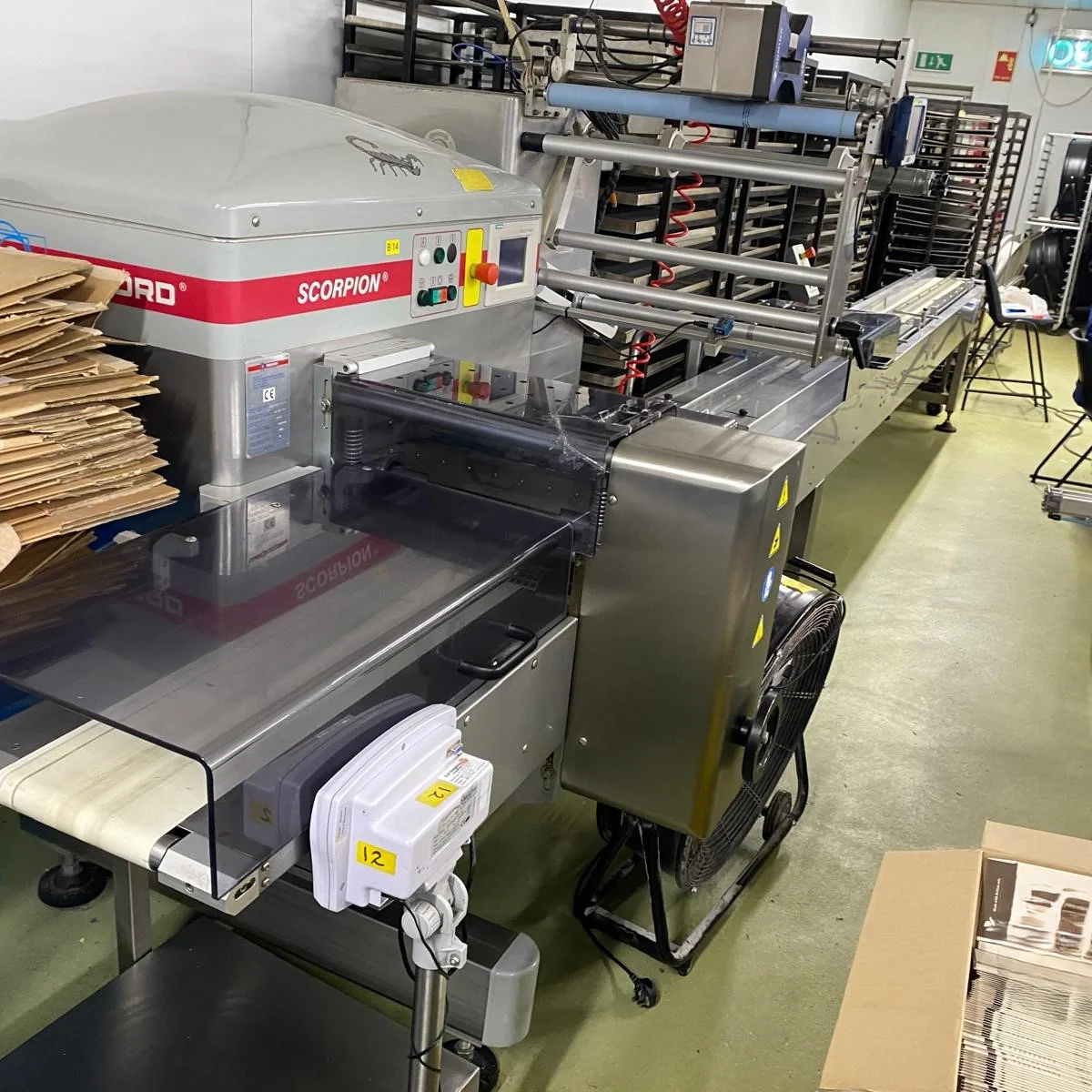 1 x Record Packaging Machinery flow wrapper with Domino V230i thermal transfer overprinter and infeed conveyor. Fitted with an adjustable folding box, this unit is suitable for wrapping a variety of products in printed or clear film.