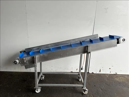 Rijkaart Flighted elevator conveyor, 2022, Stainless, belt width 400mm, elevates from 800mm to 1600mm, mobile, 3Ph