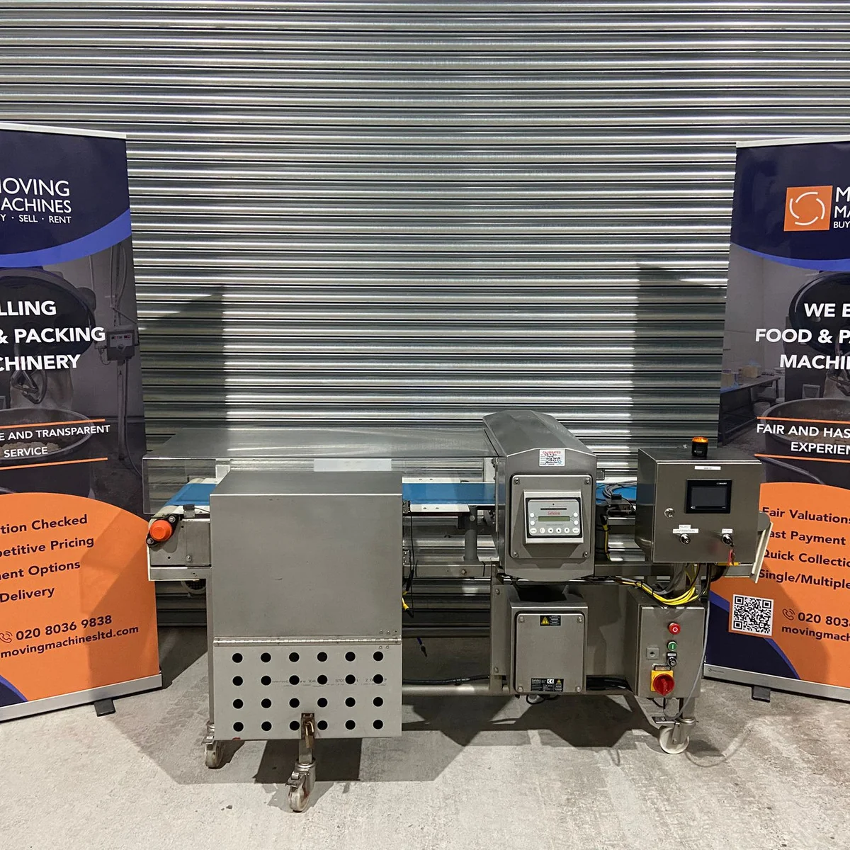 1 x Safeline Signature metal detector with pneumatic push-arm reject system into a lockable bin.