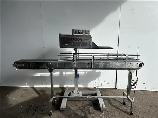 Continuous band sealer, stainless unit on stainless height adjustable frame, adjustable temperature control, mobile, sits over a stainless conveyor 2400mm x 200mm, 3Ph