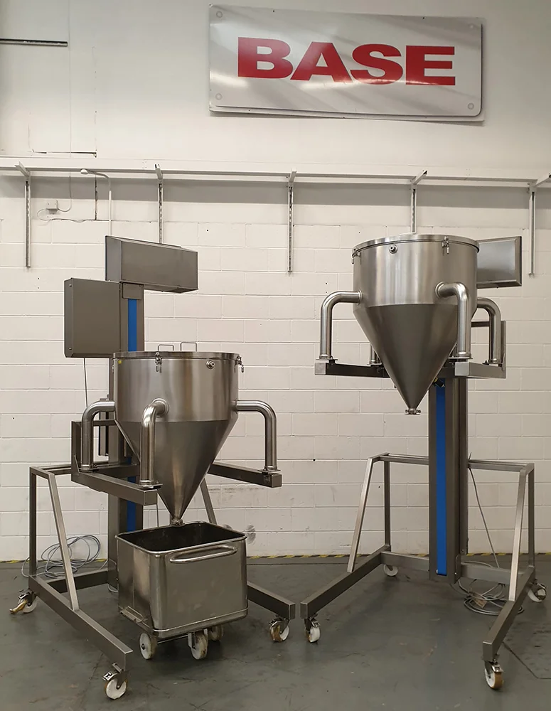BTM/150/2250/M Single Pillar Screw LiftThis Screw Lift is designed to lift vertically a Dinex Drum from a low level loading position to a height of 2250mm. The Screw Lift was manufactured from Grade 304 stainless steel and is a welded construction throughout. The lifting is achieved by a ball screw driven by a motor gearbox mounted at the top of the main column. The Armoloy coated ball screw and other column internals were covered from sight by a PU belt to aid cleaning. The Screw Lift was a mobile version to allow access within the process room for cleaning. The Screw Lift also incorporated a load arrestor mechanism, which prevents the load from falling to the floor in the event of a ball screw failure. The Load arrestor was mild steel, but encased in a stainless steel housing. Screw Lift Electrical ControlThis Screw Lift is fitted with an IP65 Stainless Steel Control Panel which is mounted on the main column at a convenient position to give good maintenance access under the Provision and Use of Work Equipment Regulation 1998 (PUWER). The Screw Lift has ‘hold to run’ control such that the ‘Up’ or ‘Down’ pushbuttons must be held for the Screw Lift to operate. As soon as the button is released, the Screw Lift will stop. The control panel has the facility for a ‘Call to Run’ signal to be connected if required. |