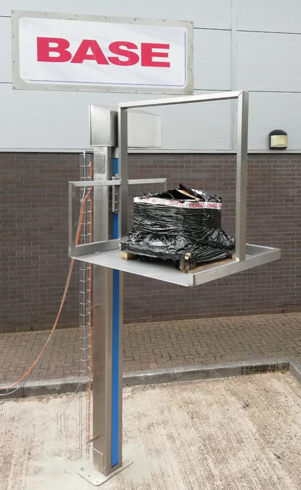 PLM/125/2080/B Single Column Screw LiftThis Single Column Screw Lift has a 1200 x 1050mm platform to allow an 1100 x 1000mm Pallet to be loaded onto it at the ground floor before being lifted to a height of 2080mm. The Single Column Screw Lift is manufactured from Grade 304 stainless steel, is a welded construction throughout and is designed to be bolted to the floor. The lifting is achieved by the rotation of a ball screw driven by a motor gearbox mounted at the top of the main column. The Single Column Screw Lift is fitted with a safety nut which will engage in the extremely unlikely event of the drive nut failing. Single Column Screw Lift Electrical ControlThis Single Column Screw Lift is supplied with an IP65 Control Panel which was mounted remotely at the upper level at a convenient position to give good maintenance access under the Provision and Use of Work Equipment Regulation 1998 (PUWER). The Control Panel was fitted with a 4 Meter flexible armoured power supply cable which was connected to a suitable isolator. The unguarded Single Column Screw Lift operates on a ‘hold to run’ principle such that the ‘Up’ or ‘Down’ pushbuttons must be held for the Single Column Screw Lift to operate. The ‘Up’ control pushbutton was mounted on the main control panel at the upper level and there was a separate push button station with the ‘Down’ control at the lower level. As soon as a push button is released, the Single Column Screw Lift stopped. The control panel has the facility for a ‘Call to Run’ signal to be connected if required. |