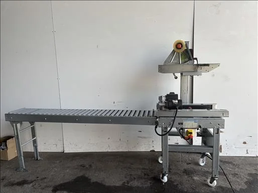 Soco T10 Mini Mini Case taper, 2011, top and bottom case taper, side grip belts, comes with spare belts, min box with 60mm to max box width 280mm, max box height 500mm, with 2000mm outfeed roller conveyor, mobile, 3Ph