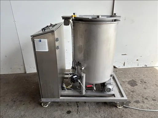 Sollich RT250K Chocolate Tanks, Serial: , 2017, Stainless, 250Kg cacacity, chocolate tank, top mounted sieve, bottom mounted agitation, variable speed, adjustable temperature control, with bottom mounted Sollich lobe pump all on the skid, also have the Sollich Miniturbo MT150 tempering machine that went inline with this, mobile, 3Ph