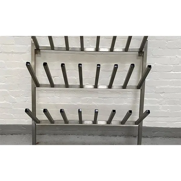 Stainless steel wall-mounted boot rack.