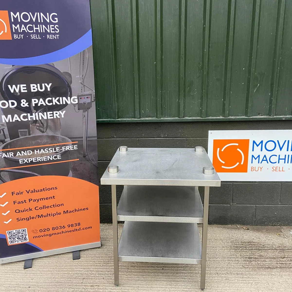 Heavy duty stainless steel equipment stand with adjustable legs, two stainless steel undershelves