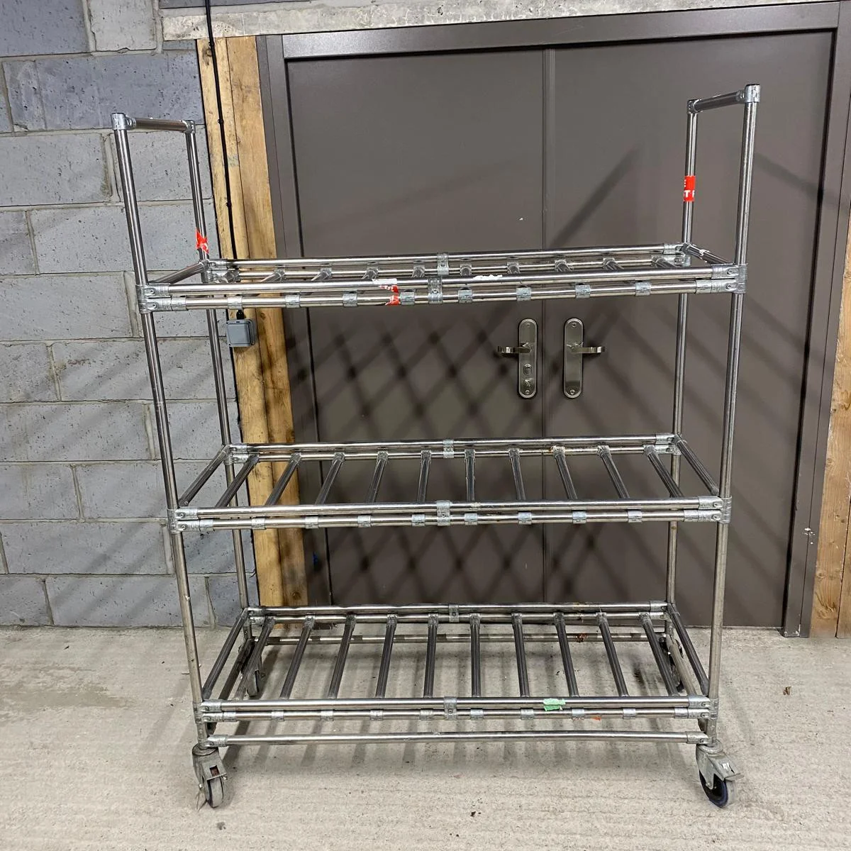 1 x Stainless steel heavy-duty tubular frame mobile rack.