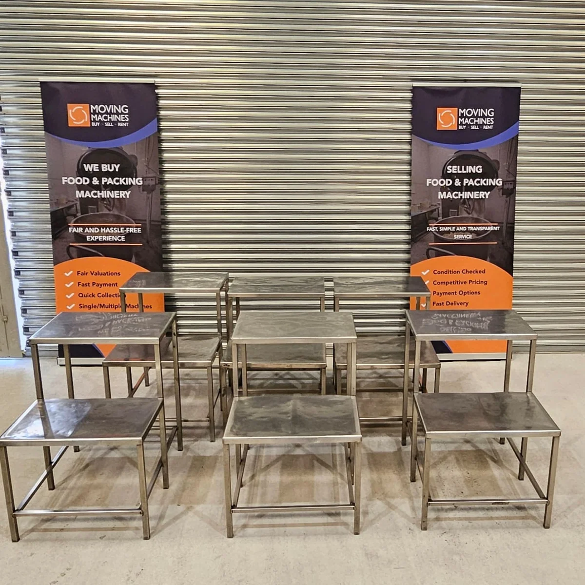 6 x Stainless steel packing stations, each measuring: 840mm L x 610mm W x 820mm H.