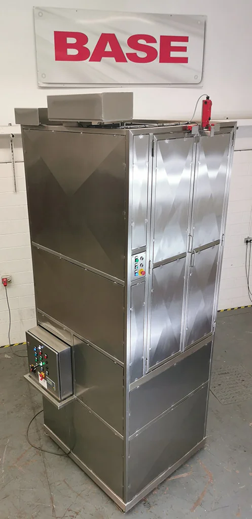 PLM/300/1600/B/G Single Pillar Stainless Steel Platform LiftThis Stainless Steel Platform Lift has a Safe Working Load of 300 Kgs and a lift height of 1600mm. The lifting platform was 1300 x 900mm to allow either a Blue Bin (1200mm L x 800mm W x 750mm H) or a Trolley (900mm L x 700mm W x 1000mm H) to be loaded at the ground floor and to lift to a mezzanine floor at a height of 1600mm. At the upper level, there was a landing plate to allow easy unloading directly onto the mezzanine floor. The Stainless Steel Platform Lift is constructed from Grade 304 stainless steel, is fully welded throughout and is designed to be bolted to the floor without the need for a pit. The lifting is accomplished via a motor gearbox mounted at the top of the main column and a ¾” Duplex chain. Safety Guard to BS EN 14120:2015 Safety of Machinery GuardsThe safety guard is constructed from 40 x 40 x 3mm stainless steel box section and 2mm stainless steel sheet to meet the requirements of BS EN 14120:2015 Safety of Machinery Guards. This guard will reach to a height of 2200mm above the mezzanine floor level, having a hinged doors at each level through which the Stainless Steel Platform Lift can be loaded and unloaded. All doors are electrically interlocked to prevent the Stainless Steel Platform Lift being operated with any door open and in addition, the doors are mechanically locked closed whilst the Stainless Steel Platform Lift is running. Each door may only be opened when the lifting carriage is at the appropriate level. Stainless Steel Platform Lift Electrical ControlThis Stainless Steel Platform Lift is fitted with an IP65 Stainless Steel Control Panel which is mounted on the safety guard at a convenient position to give good maintenance access under the Provision and Use of Work Equipment Regulation 1998 (PUWER). The control panel incorporates the following controls; Up, Down, Guard Release, Emergency Stop, Cleaning Key Switch and a Reset Facility. There will be a remote Stainless Steel push button station at the upper level incorporating the following controls; Up, Down, Guard Release and Emergency Stop. Dual Upper and Lower end of travel limit switches are positioned to prevent inadvertent adjustment or damage but are easily adjustable by trained personnel for fine adjustment on site. The Stainless Steel Platform Lift operation is latched so that pressing the respective ‘Up’ or ‘Down’ push buttons once will raise or lower the lift to the other floor level. Each time the Lift Carriage activates the upper limit switch, an electrical actuator will be driven out underneath the lift carriage to support it while it is loaded. Before the lift can move again, the actuator will retract automatically once the down button is pressed. Stainless Steel Platform Lift Cleaning SystemThis cleaning system is fitted to the Stainless Steel Platform Lift during manufacture to allow access to the floor beneath the lift carriage for cleaning. The cleaning system operates as follows:-