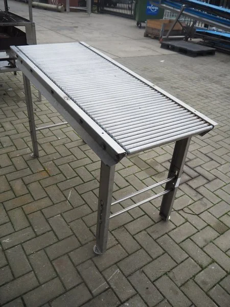 Roller conveyor, s/s frame, s/s rollers, roller width: 530 mm, total dimensions: 1500 mm x 630 mm x 970 mm.