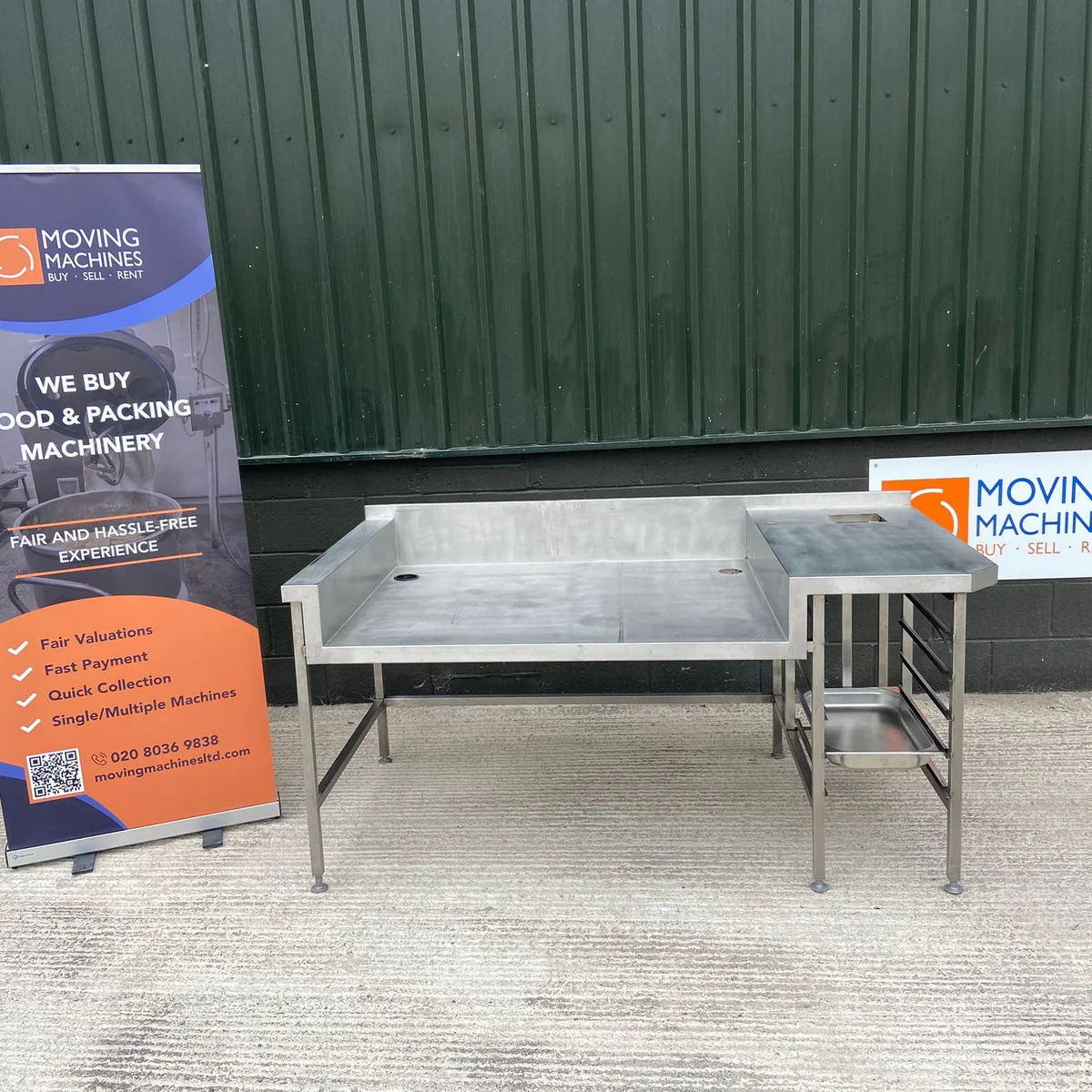 Stainless steel wash down / preparation workstation for meat or fish handling.