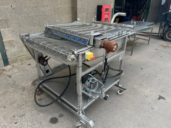 Feature: Tempura Batter Enrober Make: Stein Model: APB-34H Feature: 34″ belt width / 900mm Feature: Submerge/hold down belt design Feature: Hydraulic drive, can be supplied with a power pack.