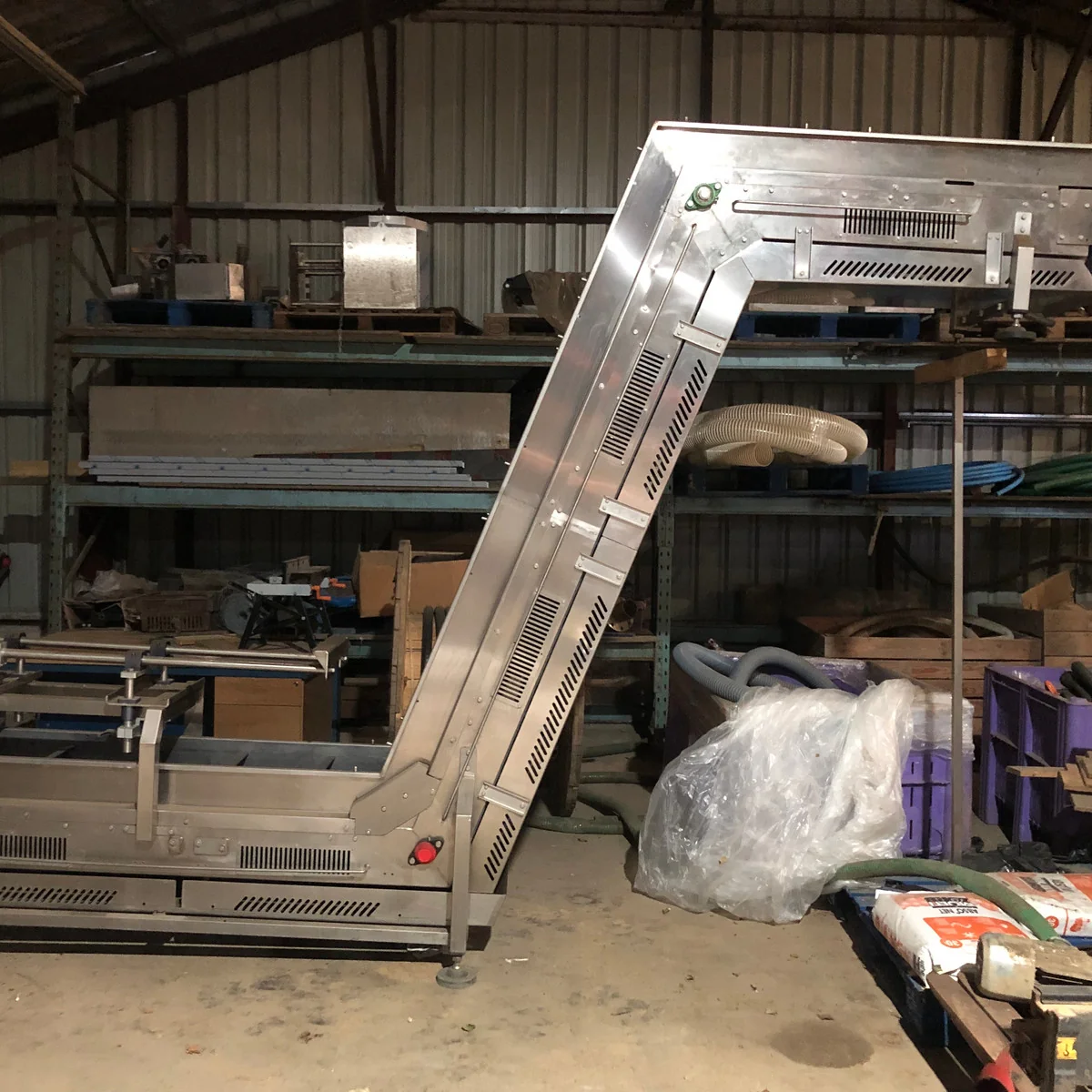1 X Large stainless-steel framed swan-neck elevator conveyor with flighted belt.