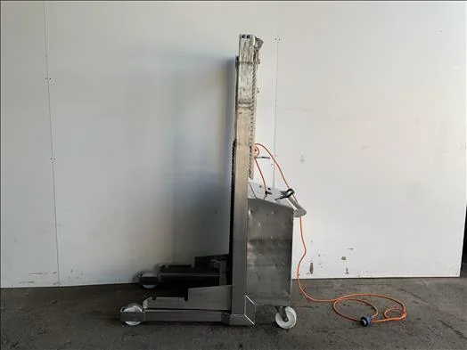 Stainless tote bin lifter, lifts to 1.5m, battery powered, 3Ph
