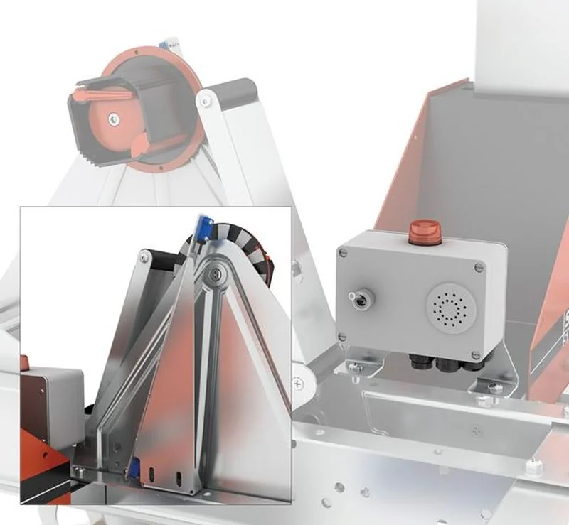 The monitoring system supervises the tape teller and the knife by means of photocells. The alarm generates an audio visual warning and, if required, it can stop the machine at the same time.
