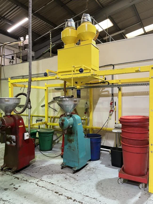 They were set-up for filter coffee and ran in conjunction with a twin-head jenco infeed mounted to a gantry above with rails to allow the dosing head to slide from left to right to feed each grinder. The jenco comes complete with vacuum pipes and two lances for transporting whole beans from a bulk hopper/bins at ground floor level to the grinders below. The jenco system and ganty are less that three years old.