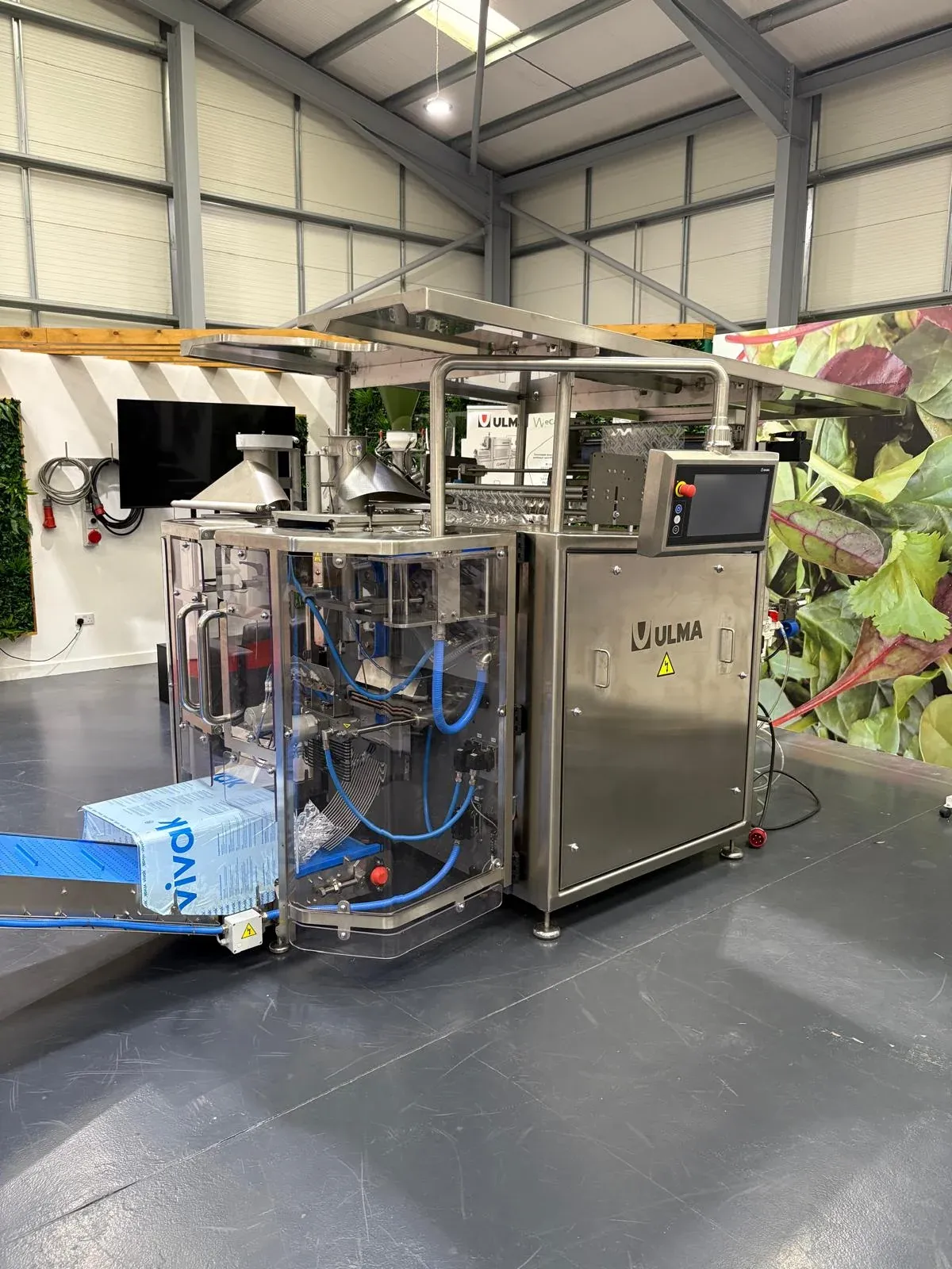 It handles BOPP, laminated and PE films, producing pillow, gusseted, flat-bottom and 4-edge-seal packs, plus stable-base and easy-doy styles.