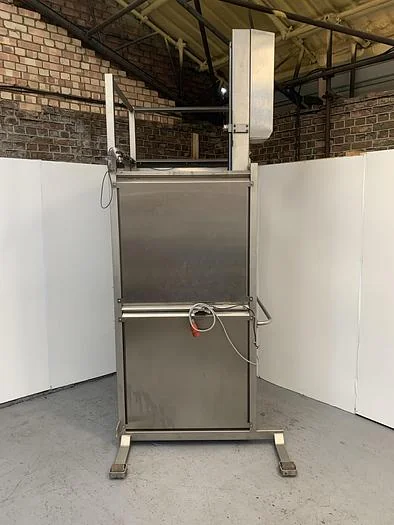 Unused Mobile Syspal Bin Loader HR1 SL1 001 / /SCH-1131. This is in very good condition inclusive of all safety switches and fail safes. 2.6 metre tipping height which is perfect for tipping into Handtmann or Veemag Fillers.