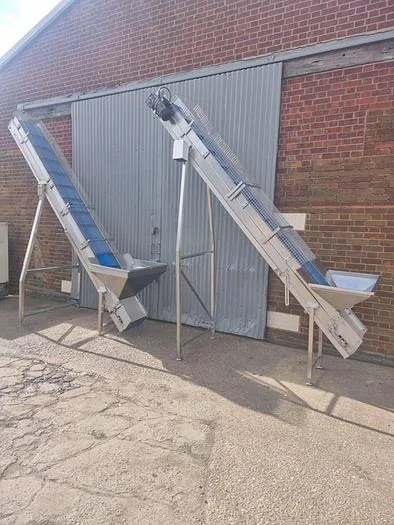 Stainless steel infeed conveyor with Hopper Height of 1100mm.