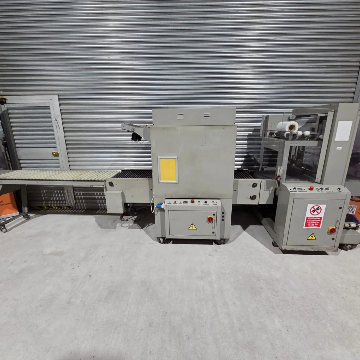 1 x Wraps (UK) Ltd automatic sleeve sealer with heat tunnel and gravity conveyor.